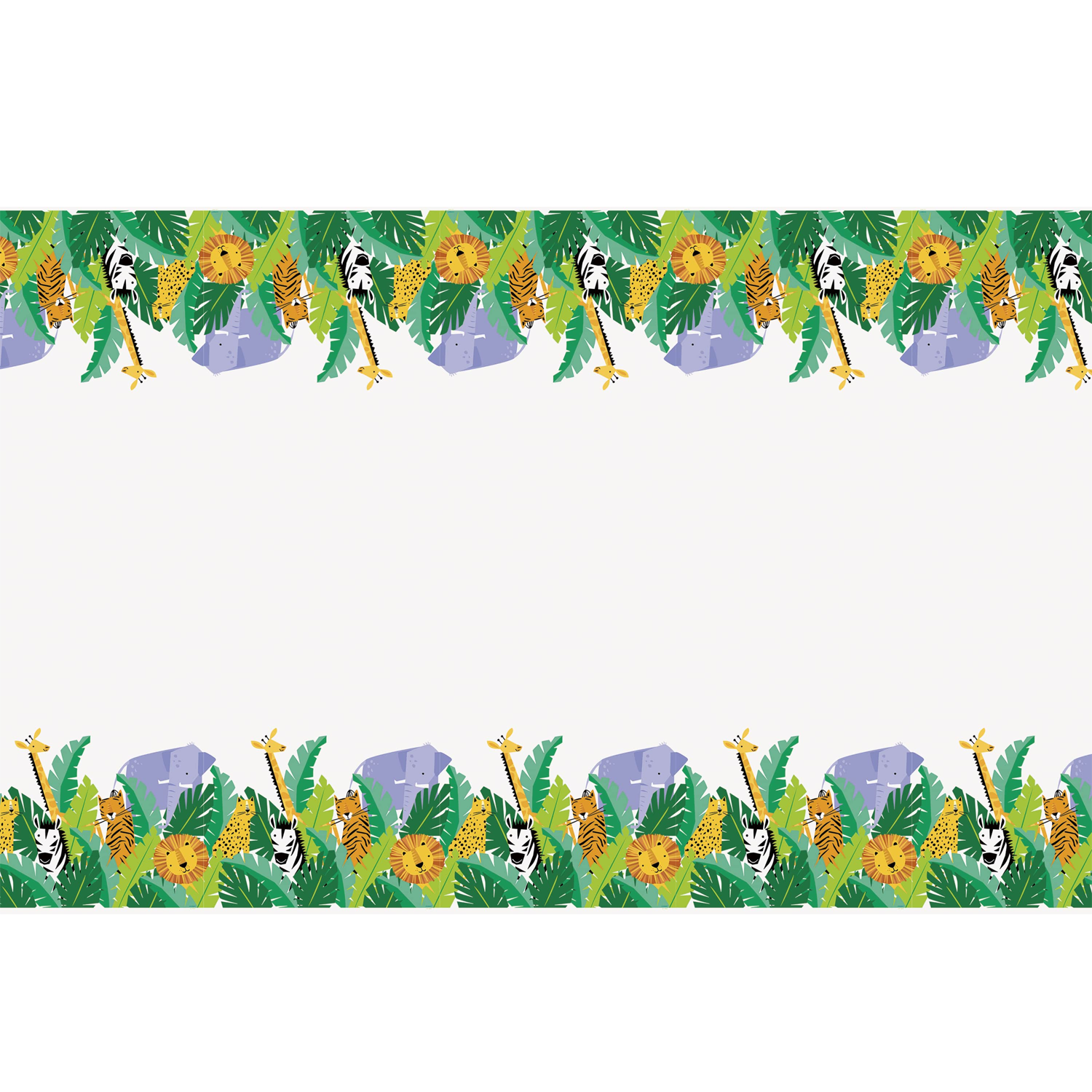 Transform your party space into a wild safari scene with the Animal Safari Plastic Table Cover, 54″ × 84″. Made from durable, waterproof polyethylene, this rectangular cover features vibrant full‑color prints of lions, elephants, giraffes, zebras, and lush jungle foliage. Its generous size fits standard 6‑foot tables, providing complete protection against spills and stains. Easy to drape and even easier to clean up—simply wipe or discard after use—this themed table cover brings instant adventure and cohesion to birthdays, baby showers, and animal‑themed events. Jungle Safari Birthday Party Supplies