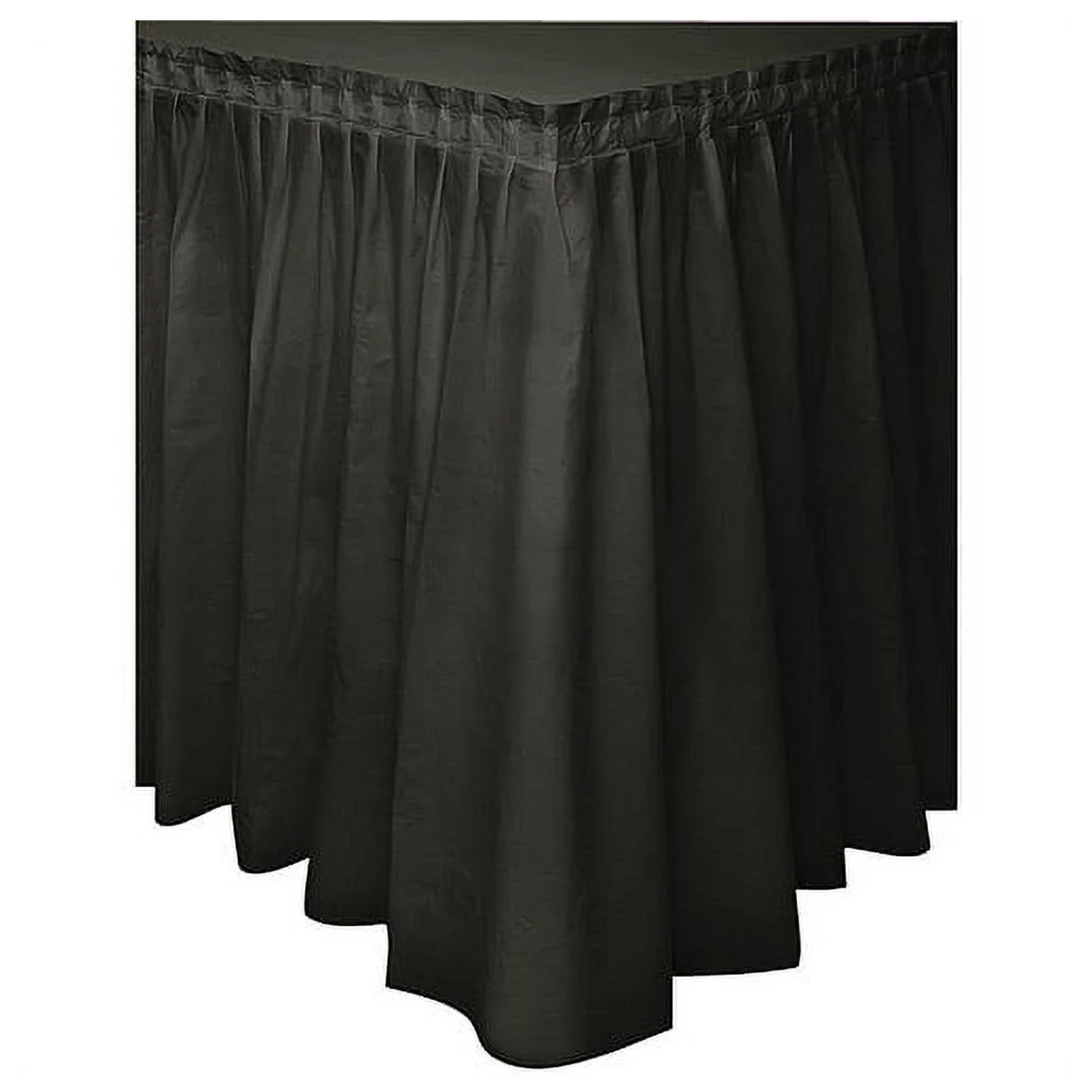 Dress up your event tables with sleek sophistication using the Black Solid Plastic Table Skirt, measuring 29″ high by 14 ft long. Made from heavy-gauge, waterproof plastic, this skirt drapes smoothly around standard banquet and folding tables to hide legs and under-table storage. The crisp matte black finish complements any color scheme—from elegant weddings to corporate functions or chic birthday parties. Built-in peel-and-stick adhesive backing ensures a secure, tool-free installation. When the festivities end, simply wipe clean or roll up flat for compact storage and reuse. Table Skirts