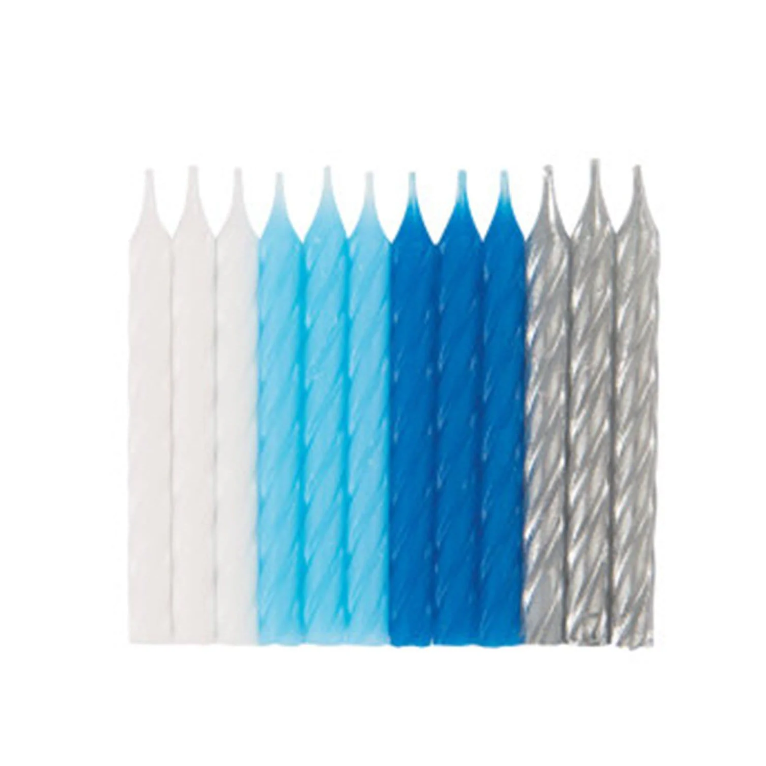 Add a touch of elegance to your celebration with this 24-count set of Blue, White & Silver Spiral Birthday Candles....