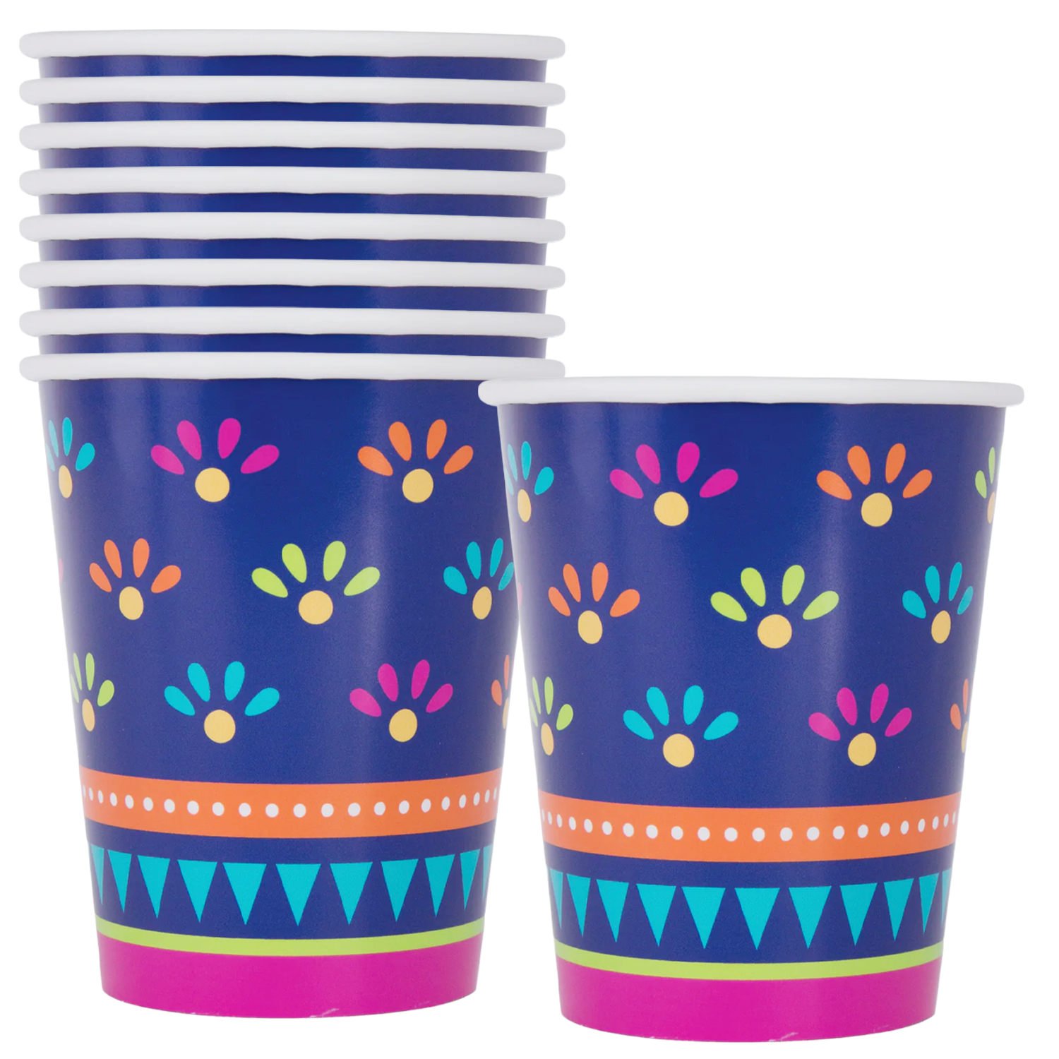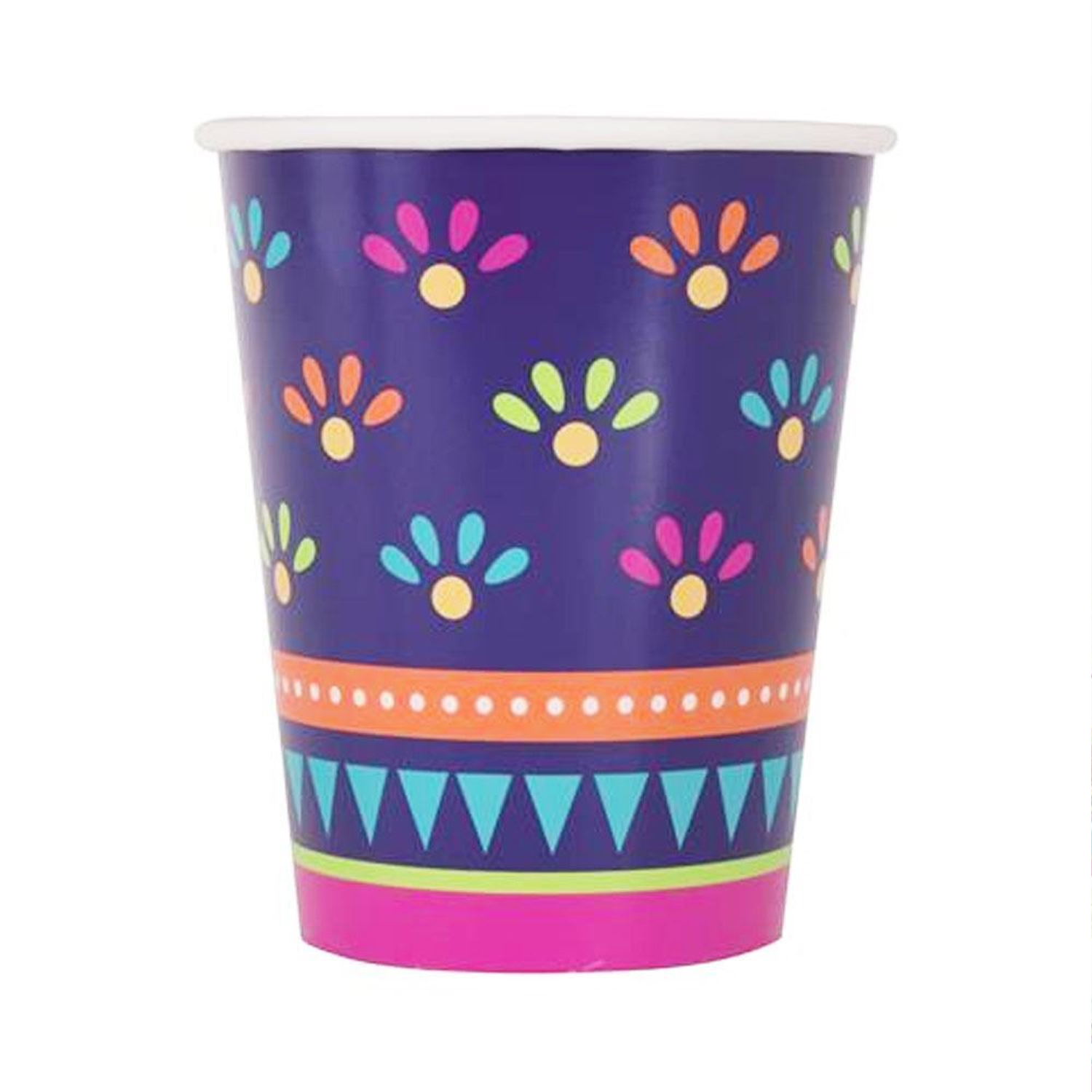 Keep drinks flowing in bohemian style with our Boho Fiesta 9 oz Paper Cups. Each set of eight cups features earthy tribal patterns—arrows, chevrons, and sunburst motifs—in warm terracotta, teal, mustard, and cream hues. Crafted from sturdy, leak‑resistant paper, these cups comfortably hold your favorite cold beverages without bending or dripping. Perfect for backyard fiestas, bridal showers, or casual gatherings, they bring artisanal flair while being fully disposable and recyclable for easy cleanup. Fiesta Birthday Party Supplies