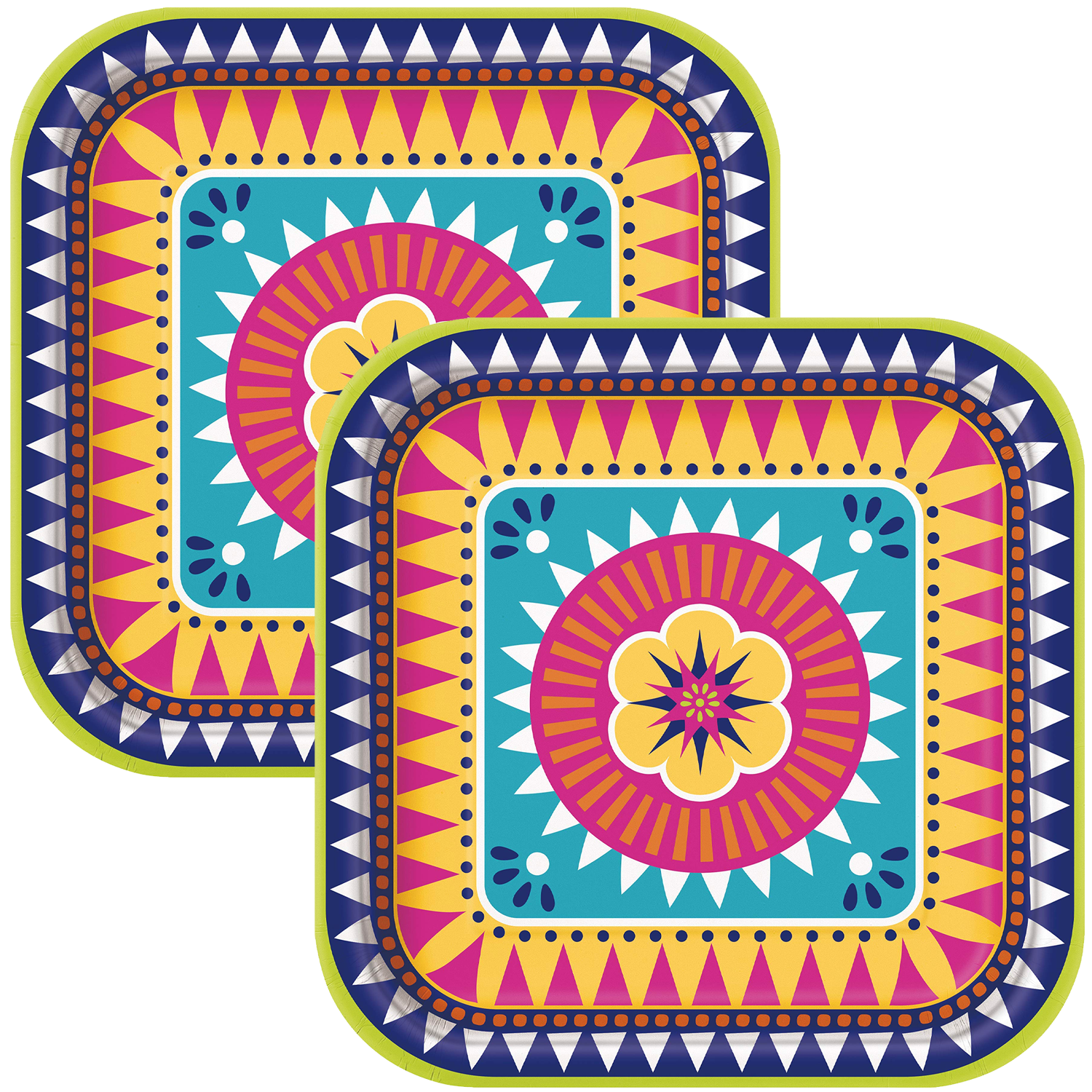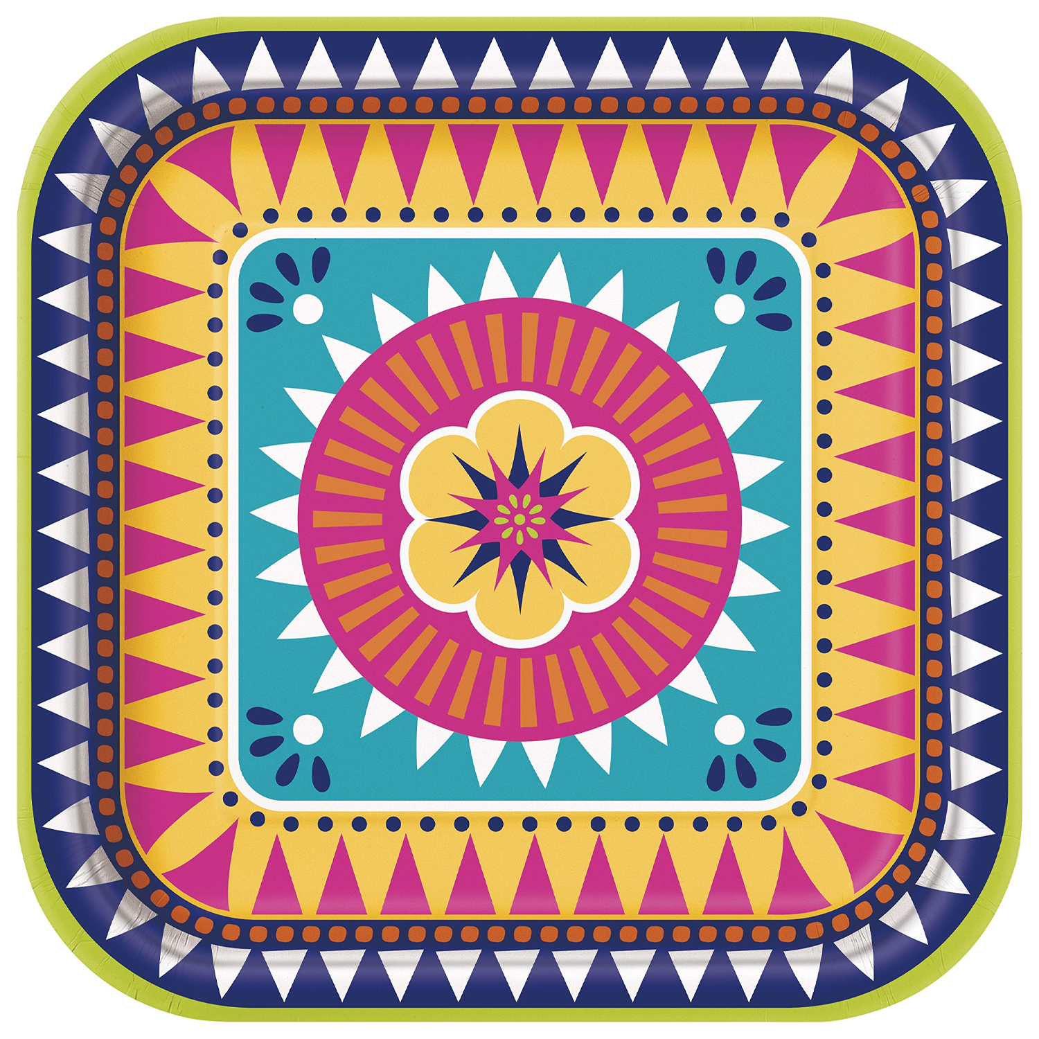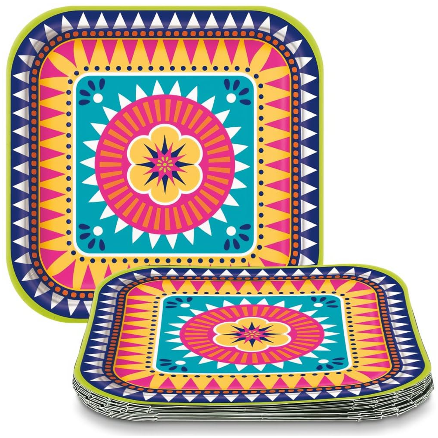 Serve main courses in laid‑back boho style with our Boho Fiesta Square 9" Dinner Plates. Each plate features a chic tribal pattern—arrows, chevrons, sunbursts and geometric motifs—in warm terracotta, teal, mustard and cream hues. Crafted from premium, grease‑resistant paper, these sturdy square plates hold everything from grilled veggies and salads to pasta and sandwiches without bending or leaking. Pack of eight ensures you’re ready to host intimate dinners, bridal showers, backyard fiestas or everyday family meals with effortless, artisanal flair. Fiesta Birthday Party Supplies