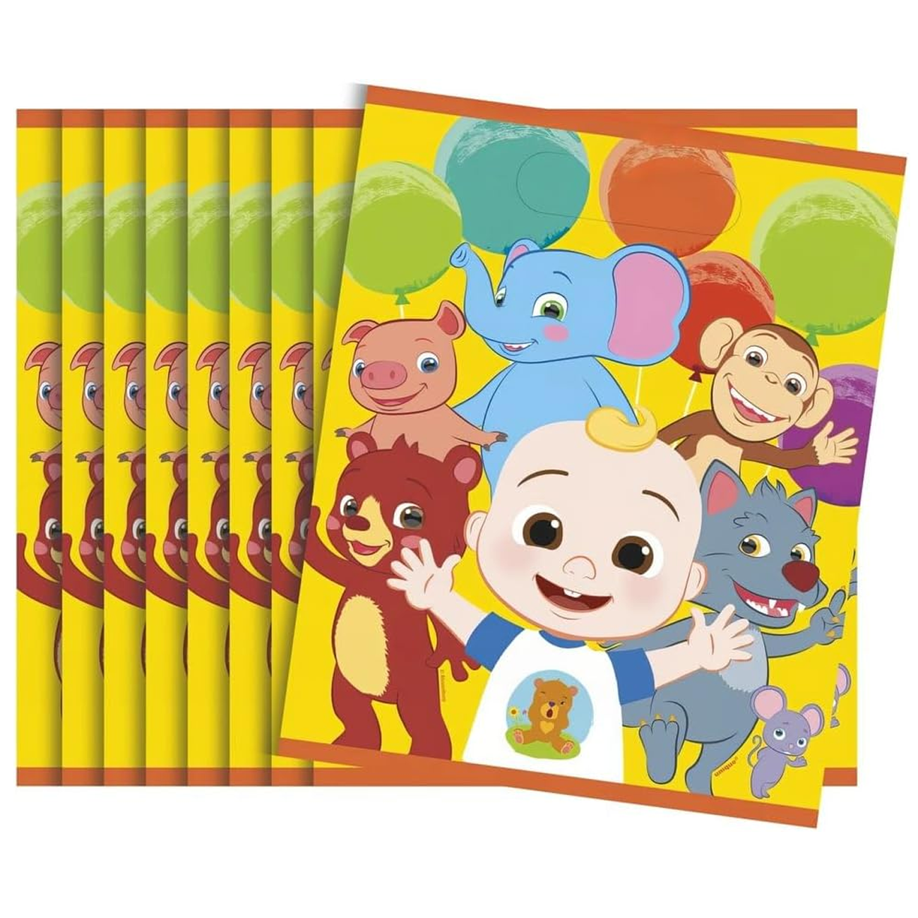 Take the guesswork out of party favors with this convenient pack of 8 CoComelon Loot Bags. They provide a simple, stylish, and perfectly themed way to present your thank-you gifts to guests. This saves you time on packaging while ensuring every detail of your party, right down to the very end, matches your CoComelon theme.