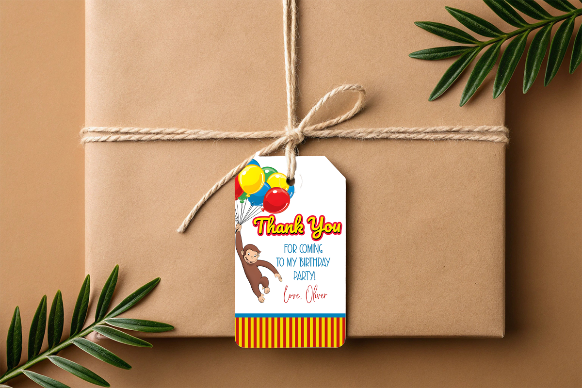 End your event with a smile using these Curious George Thank You Tags – the sweetest way to thank your guests!