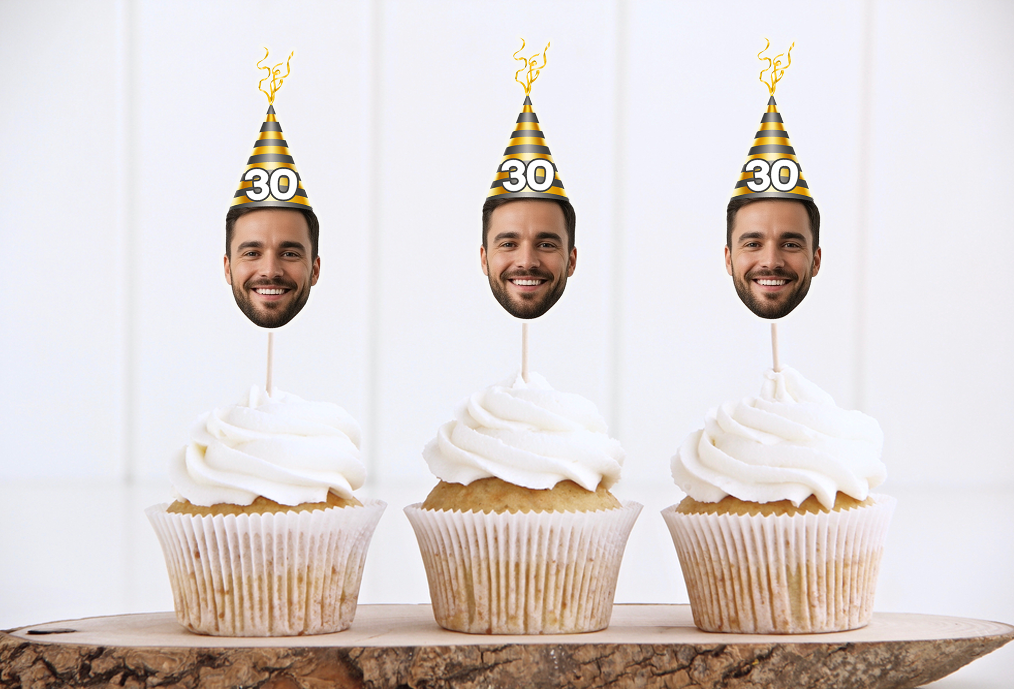 Custom Face Cupcake Toppers for Birthdays 10 ct