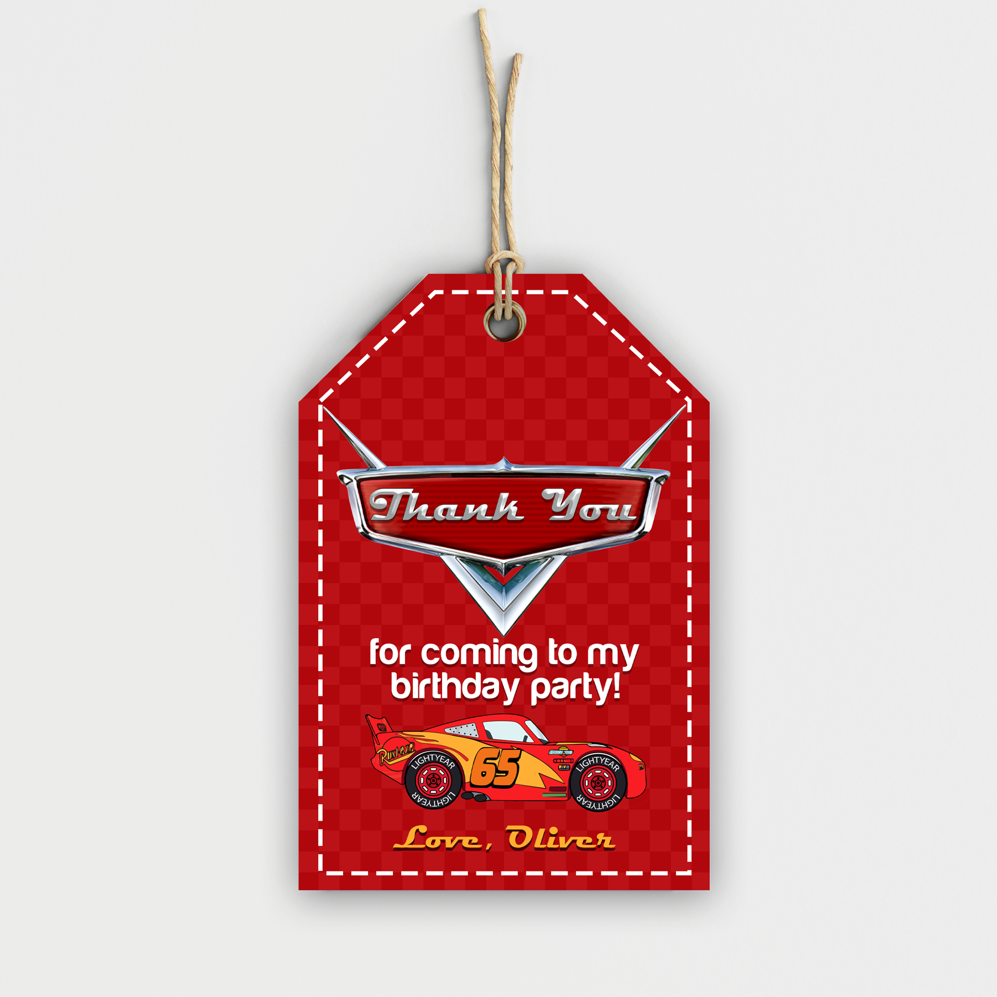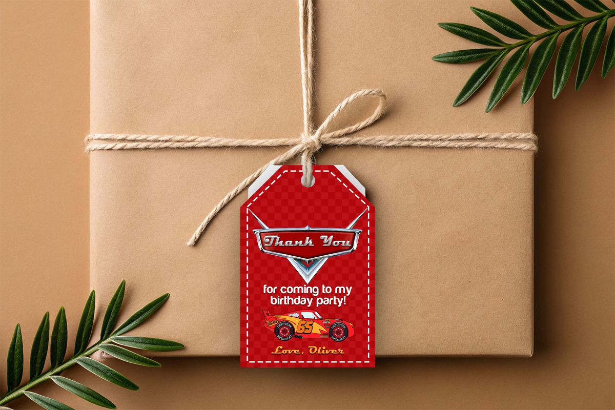 Send your gratitude in high-speed style with these Disney Cars Personalized Thank You Tags – a must-have for Lightning McQueen fans!