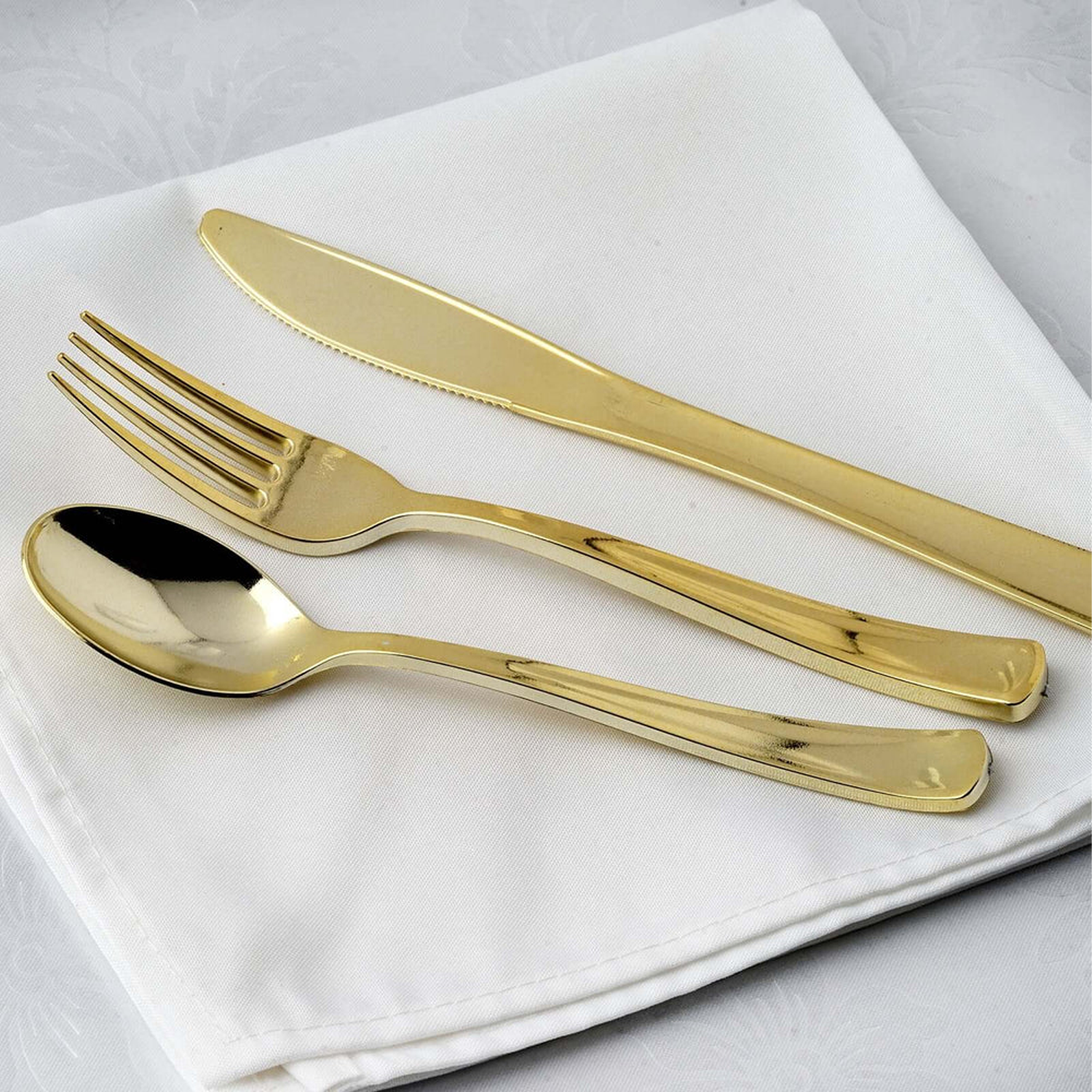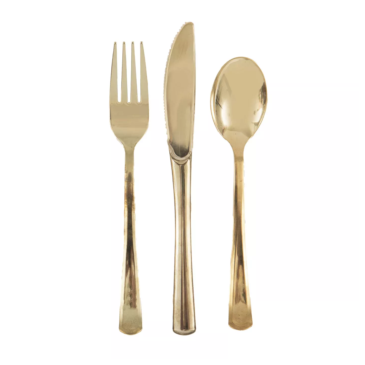 Add a touch of glamour to your next event with the Gold Solid Assorted Plastic Cutlery set (18 ct). Crafted from food-grade, BPA-free polystyrene, each piece features a lustrous metallic gold finish that gleams under any light. This versatile assortment includes forks, knives, and spoons, all designed with ergonomic handles and sturdy construction to handle everything from appetizers through dessert. Lightweight yet durable, these disposable utensils simplify setup and cleanup—perfect for weddings, anniversary parties, corporate galas, and any celebration that calls for a bit of sparkle. Gold Party Decorations