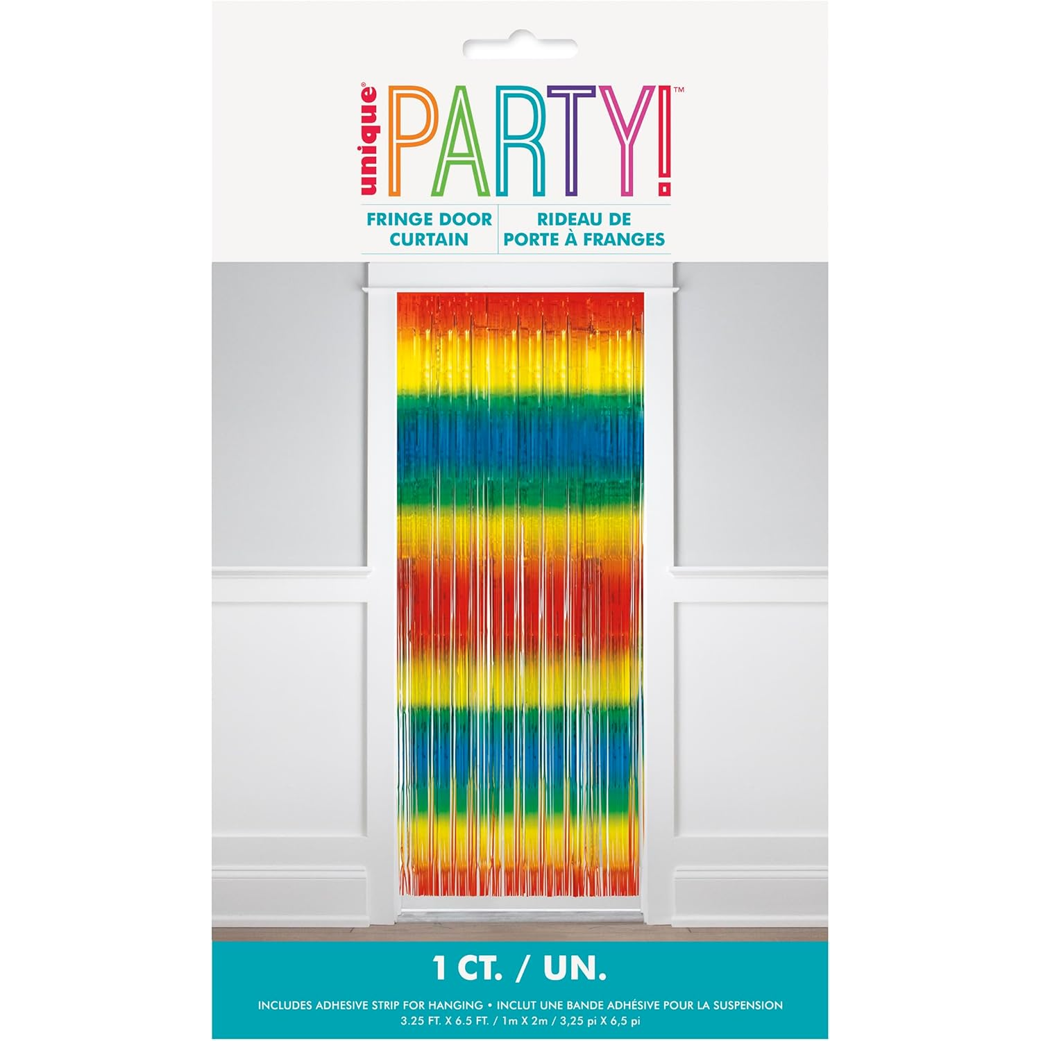 Add a burst of color and shimmer to your celebration with this Rainbow Metallic Fringe Door Curtain! Measuring 3.25 feet...