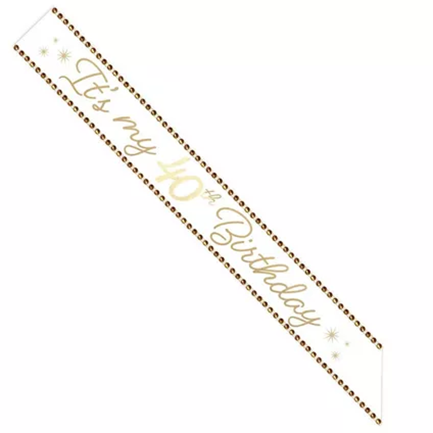 ✨ Elegant satin sash with sparkling rhinestone “40” design