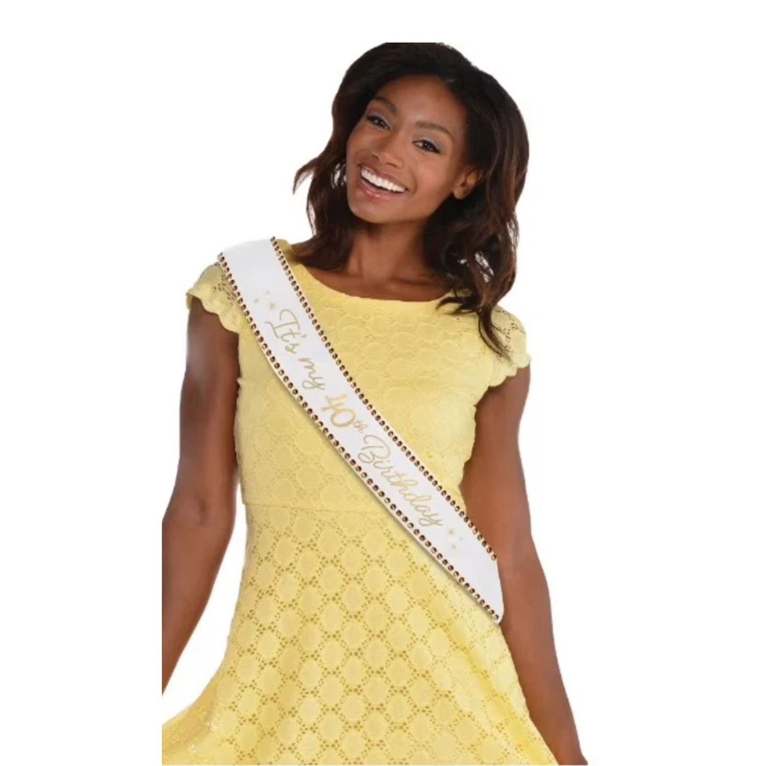 Whether paired with a party dress, casual outfit, or even worn as a fun accessory at the office, this Golden Age 40 sash guarantees the spotlight stays on the birthday star!