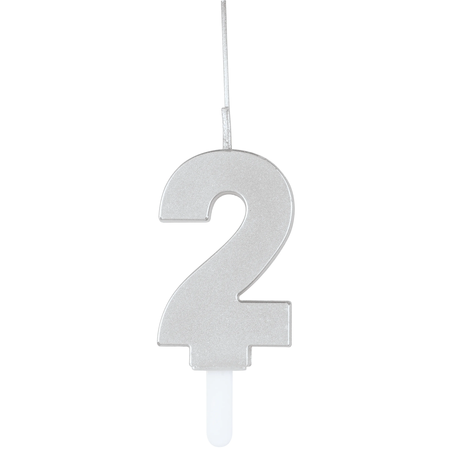Silver Number 2 Sparkler-Topped Birthday Candle