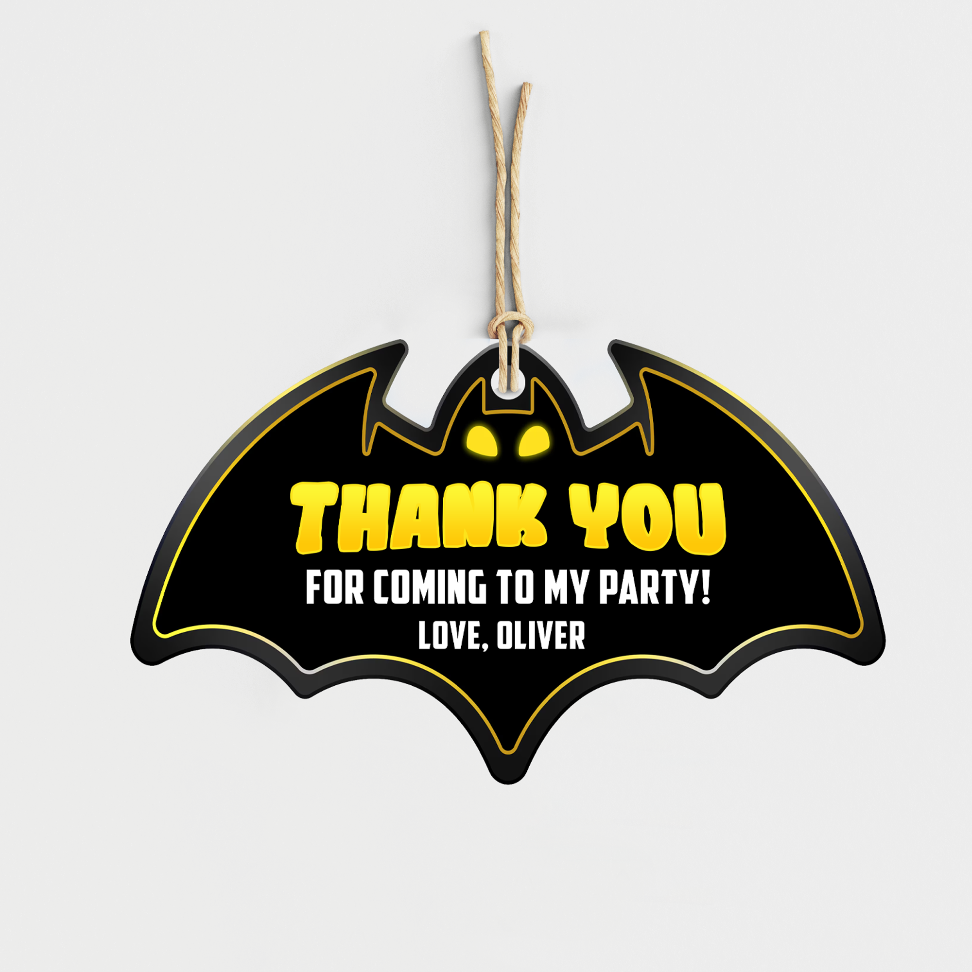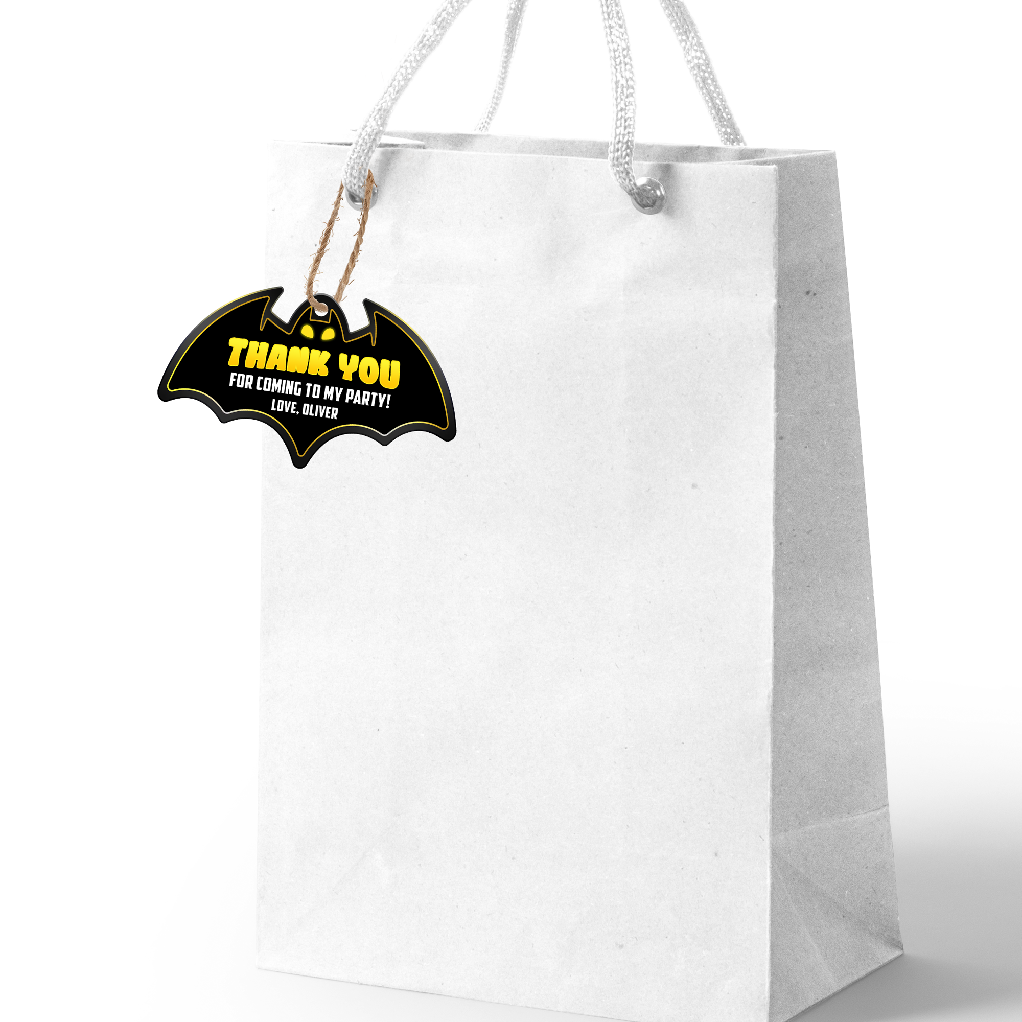 Send your thanks in superhero fashion with these Bat Theme Thank You Tags – small but mighty party details!